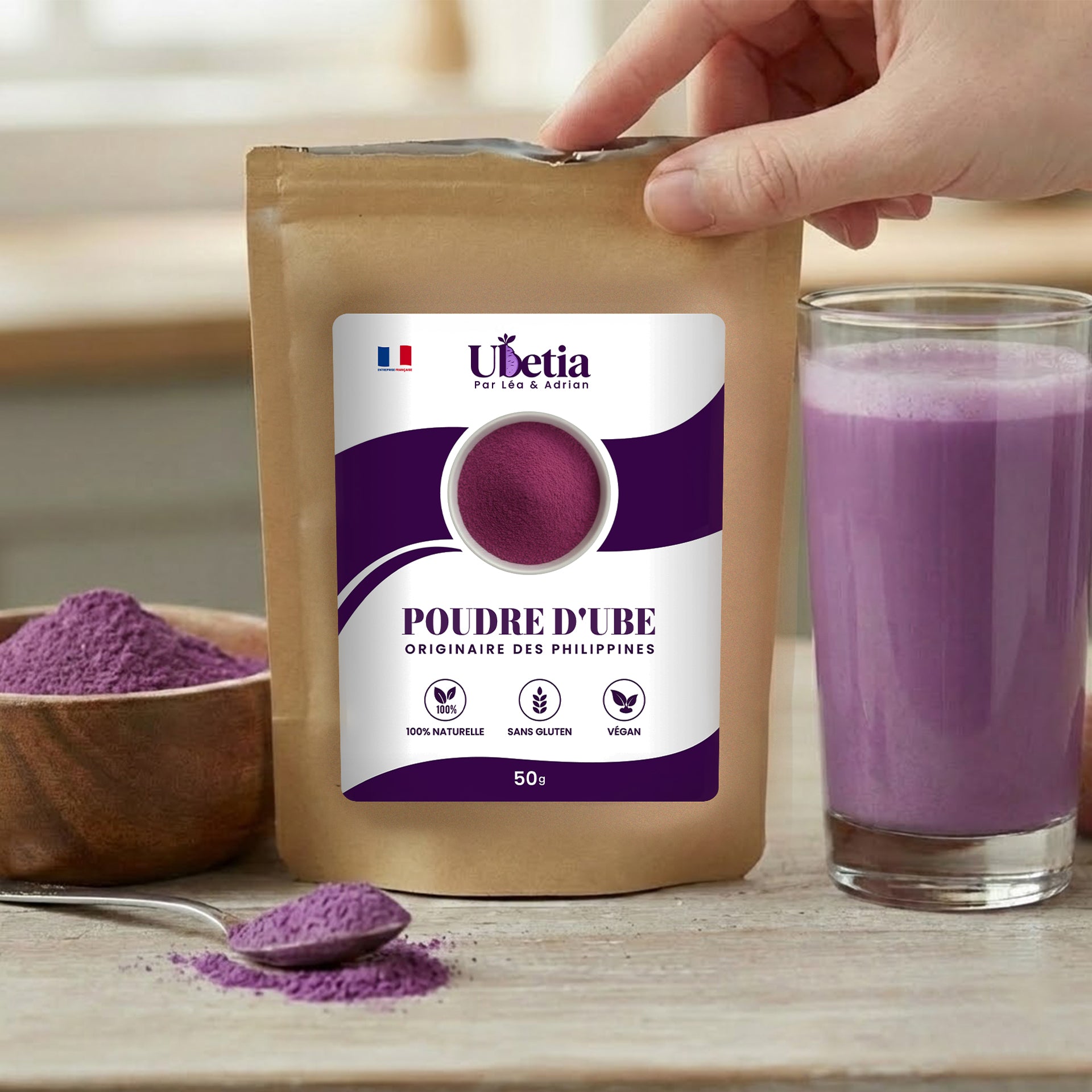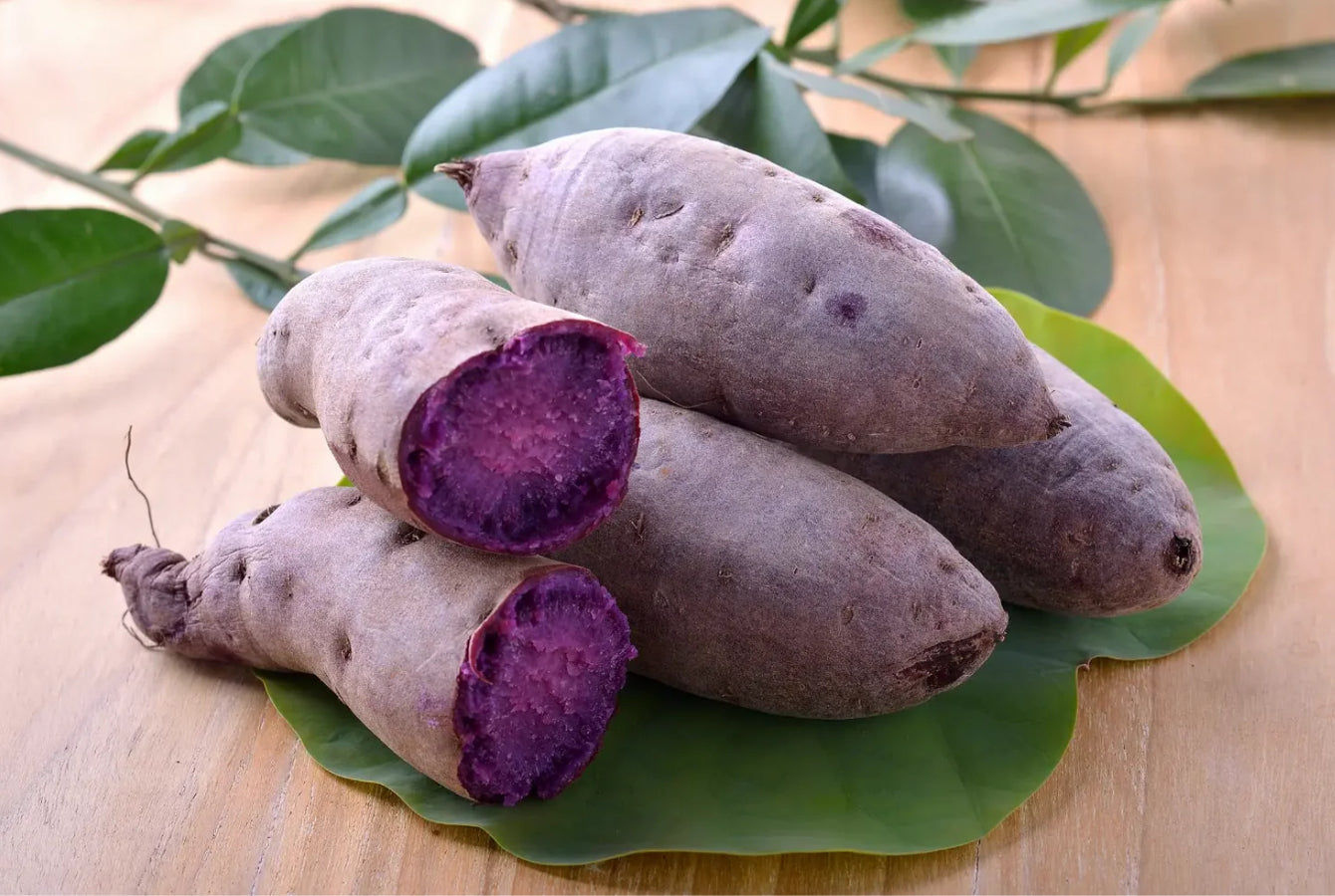 Cette racine emblématique des Philippines, l’ube ou igname violette (Dioscorea alata), donne une poudre naturellement douce et riche en antioxydants, cliquez ici pour visualiser notre page dédiée