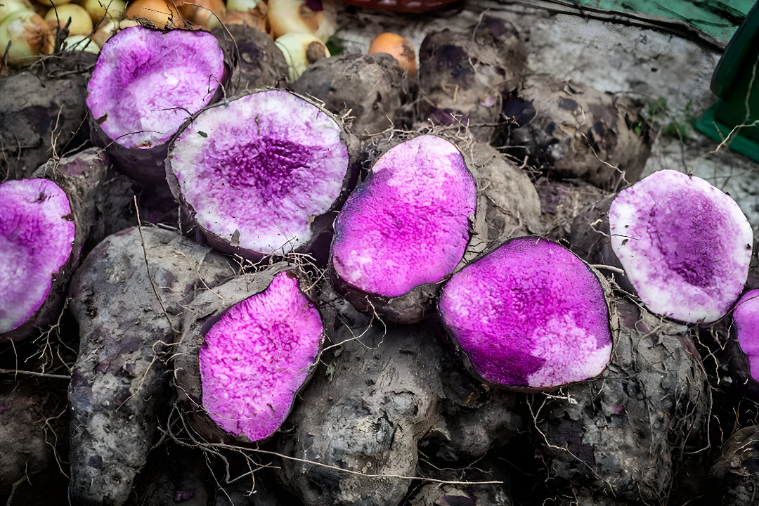 L’ube est une igname violette, nom botanique Dioscorea alata, un tubercule originaire d’Asie du Sud‑Est et pilier de la cuisine philippine depuis des générations. Sa peau brun gris cache une chair violette riche en pigments anthocyaniques qui lui donnent sa couleur unique et un goût doux, noisetté et légèrement vanillé une fois cuit. Sur le plan nutritionnel, l’ube apporte des glucides complexes, environ 4 g de fibres pour 100 g cuits, ainsi que du potassium et de la vitamine C en quantités intéressantes.